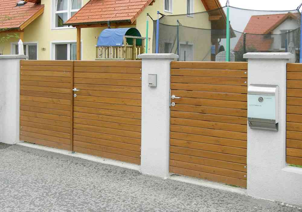 FRÖSCHL verwendet für seine bewitterten Bauteile ausschließlich Lärchenholz. Bei allen Oberflächen empfehlen wir eine jährliche Reinigung, vor allem wenn sich durch angrenzende Bäume Blätter und Grünspan am Zaun ablagern.